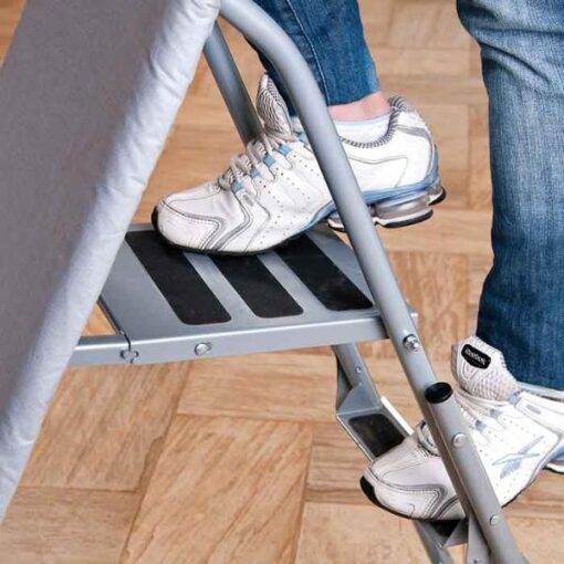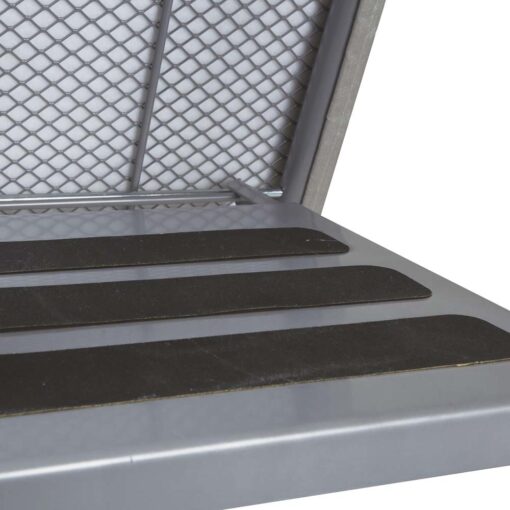 Vật liệu bằng thép sơn tĩnh điện rất chắc chắn. Khung bằng ống thép chịu lực lên tới 150kg khi sử dụng làm thang.